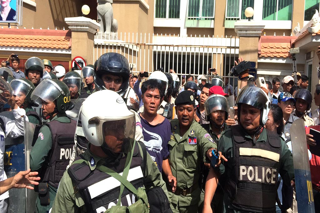 ភ្នំពេញ៖ នៅមុននេះបន្ដិច កម្លាំងប៉ូលិសជាច្រើននាក់ បានចូលទៅចាប់សកម្មជនបក្សសង្រ្គោះជាតិម្នាក់ ដែលកំពុងឈរស្រែកដាក់មេក្រូប្រឆាំងទៅនឹងការជម្រះក្ដីក្ដាន់របស់លោក កឹម សុខា អនុប្រធានបក្សសង្រ្គោះជាតិ ក្រោយពីសមត្ថកិច្ចប្រាប់កុំឲ្យស្រែកដាក់មេក្រូហើយ នៅតែមិនព្រមស្ដាប់ ។