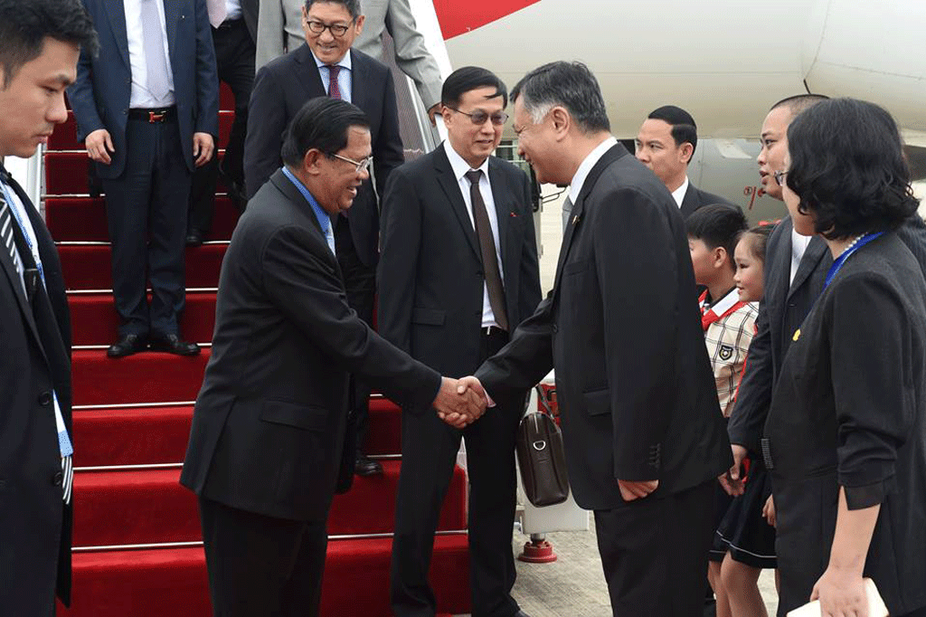 គណៈប្រតិភូអមដំណើរ រួមមាន លោក ប្រាក់ សុខុន ទេសរដ្ឋមន្ត្រី រដ្ឋមន្ត្រីក្រសួងការ បរទេសនិងសហប្រតិបត្តិការអន្តរជាតិ និង លោកប៉ាន សូរស័ក្តិ រដ្ឋមន្ត្រីក្រសួងពាណិជ្ជកម្ម ព្រមទាំងសមាជិករាជរដ្ឋាភិបាលដទៃទៀត។
