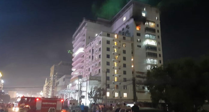 ខេត្តព្រះសីហនុ៖ ហេតុការណ៍អគ្គិភ័យបានឆាបឆេះអាគារកម្ពស់សាងសង់ជិតរួចរាល់ ដែលមានកម្ពស់ជាង១០ជាន់ ចេញពីបន្ទប់ជាន់ទី១២ បង្កឲ្យមានភាពភ្ញាក់ផ្អើលកាលពីយប់រំលងអាធ្រាត្រចូលថ្ងៃទី១១ ខែកក្កដា ឆ្នាំ២០១៩ នៅតាមផ្លូវហួសពីសណ្ឋាគារខ្សាច់ស អូរឈើទាលក្រុងព្រះសីហនុ ហើយត្រូវបានកម្លាំងសមត្ថកិច្ចចេញរថយន្តអគ្គិភ័យទៅបាញ់ តែមិនបានបាញ់នោះទេ ព្រោះសំណង់អគារមួយនេះមានប្រព័ន្ធតឹកត្រឹមត្រូវ សម្រាប់បាញ់ពន្លត់ភ្លើងរួចទៅហើយ។