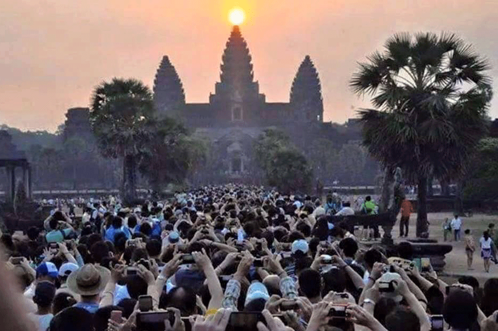 ខេត្តសៀមរាប ៖ ភ្ញៀវទេសចរជាតិ-អន្តរជាតិ ប្រមាណជិត២ម៉ឺននាក់ បាននាំគ្នាធ្វើដំណើរ ទៅទស្សនាព្រឹត្តិការណ៍បាតុភូតថ្ងៃរះចំកណ្តាល កំពូលប្រាសាទអង្គរវត្ត ដើម្បីឱ្យបានឃើញផ្ទាល់ ភ្នែក និងផ្តិតយករូបភាពដ៏អច្ឆរិយនេះ ធ្វើឱ្យ បរិវេណប្រាសាទអង្គរវត្ត ស្ថិតក្នុងក្រុងសៀម- រាប ប្រជុំដោយមនុស្សម្នាក់កុះករតាំងពីវេលា ទៀបភ្លឺថ្ងៃទី២៣ ខែកញ្ញា ឆ្នាំ២០១៦។