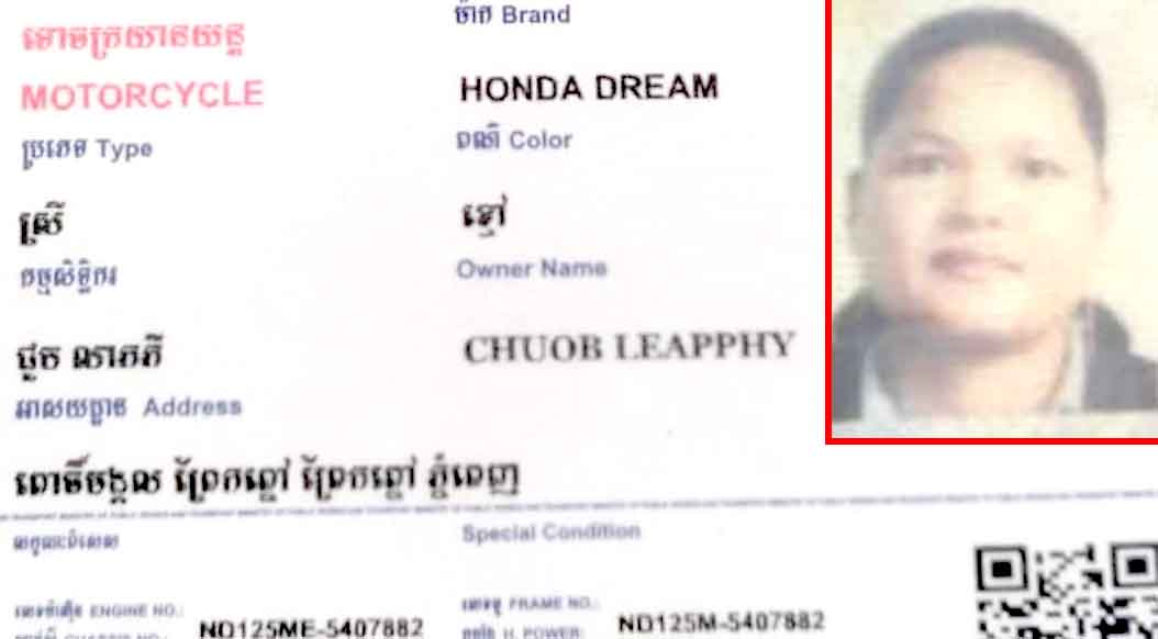 ខេត្តកំពង់ចាម ៖ ស្ត្រីម្នាក់បានជិះម៉ូតូចេញពីផ្ទះទៅដើរលេង ហើយបានយកម៉ូតូទៅផ្ញើនៅកន្លែងទទួលផ្ញើ លុះពេលបានសន្លឹកកន្ទុយប័ណ្ណ ហើយក៏យកដាក់ក្រោមកែបម៉ូតូរួចដើរលេង រហូតដល់ពេលត្រឡប់មកវិញស្រាប់តែបាត់ម៉ូតូរកមិនឃើញនៅកន្លែងផ្ញើ មិនដឹងទៅណា ហើយអ្នកទទួលផ្ញើមិនទទួលដឹងឮឡើយព្រោះគ្មានប័ណ្ណបញ្ញើ។