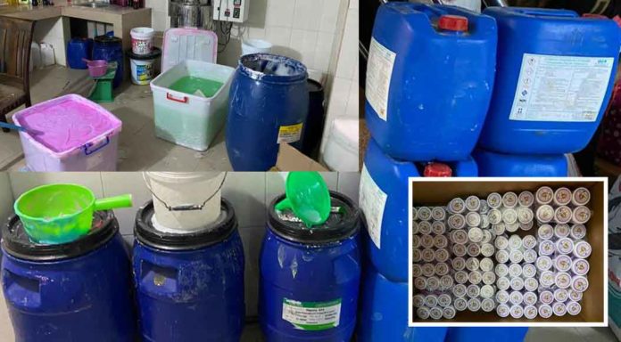 ភ្នំពេញ ៖ រដ្ឋបាលខណ្ឌដង្កោ បានសហការជាមួយគណៈកម្មការប្រយុទ្ធប្រឆាំងផលិតផលក្លែងក្លាយ ក្រោមការសម្របសម្រួលនីតិវិធីពីព្រះរាជអាជ្ញារងនៃអយ្យការអមសាលាដំបូងរាជធានីភ្នំពេញ កាលពីព្រឹកថ្ងៃទី០៧ ខែធ្នូ ឆ្នាំ២០២០ បានចុះធ្វើការត្រួតពិនិត្យទីតាំងផលិតគ្រឿងសំអាងក្លែងក្លាយមួយកន្លែង ដោយរកឃើញមេឡេលាយរួចជាស្រេចចំនួន៣ធុងធំៗ។