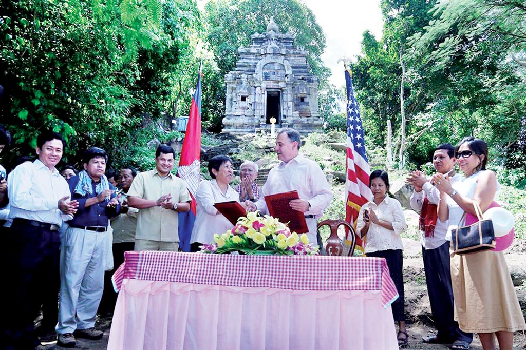 កាលពីថ្ងៃទី២៦ ខែកញ្ញា ឆ្នាំ២០១៦ មាន ពិធីចុះហត្ថលេខា រវាងលោកស្រីភឿង សកុណា រដ្ឋមន្ត្រីក្រសួងវប្បធម៌និងវិចិត្រសិល្បៈ និង លោក William Heidt ឯកអគ្គរដ្ឋទូតសហរដ្ឋអាមេរិក ប្រចាំព្រះរាជាណាចក្រកម្ពុជា លើ គម្រោងមូលនិធិរបស់អគ្គរដ្ឋទូតសហរដ្ឋអាមេរិក សម្រាប់ការតាមដាននិងធ្វើផែនទីហានិភ័យ លើប្រាសាទបុរាណខ្មែរនៅតំបន់ភាគខាងត្បូង ប្រទេសកម្ពុជា។ គម្រោងនេះ មានរយៈពេល ពីរឆ្នាំ គឺចាប់ពីខែកញ្ញា ឆ្នាំ២០១៦ ដល់ខែសីហា ឆ្នាំ២០១៨ ដោយត្រូវចំណាយទឹកប្រាក់អស់ ចំនួន ១២១ ៧៤៥ដុល្លារសហរដ្ឋអាមេរិក។