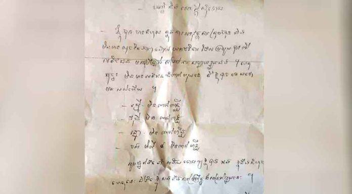 សូមថ្នាក់ដឹកនាំអភ័យទោសឱ្យខ្ញុំបាទផង ខ្ញុំដឹងកំហុស ហេតុនេះជីវិតខ្ញុំសងនឹងការប្រព្រឹត្តដ៏អាក្រក់មួយនេះ។ សូមជួយយកសពខ្ញុំទៅស្រុកកំណើតផង នៅព្រៃវែង…”។