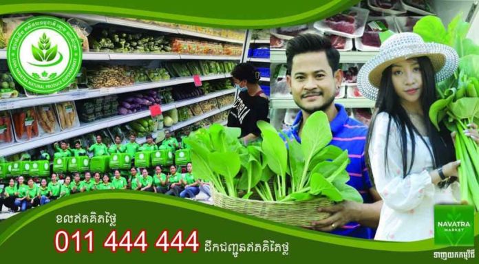 ភ្នំពេញ ៖ ផ្សារ​​ទំនើប​កសិផល​ ឡេង ណាវ៉ាត្រា ដែល​លក់​តែ​​​កសិផល​បន្លែ​​ផ្លែ​ឈើ ត្រី​សាច់​ធម្មជាតិ​ ផលិត​ដោយកសិករ​ខ្មែរ បាន​ដាក់​ឲ្យ​ដំណើរ​ការ​សាក​ល្បង​ហើយ ​កាល​ប៉ុន្មាន​ថ្ងៃ​មុននេះ​ ដោយ​ទទួល​បាន​ការ​គាំទ្រ​ជា​ខ្លាំង​ពី​មហាជន។