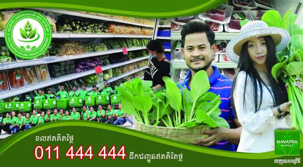 ផ្សារ​ភ្ជាប់​ពី​តម្រូវ​ការ​របស់​អតិថិជន​បច្ចុប្បន្ន ផ្សារ​ទំនើប​កសិផល​ធម្មជាតិ​ ឡេង ណាវ៉ាត្រា ​មាន​លក់​​បន្លែ ផ្លែ​ឈើ​ធម្មជាតិ គ្មាន​ជាតិ​គីមី​ នាំឲ្យ​ប៉ះ​ពាល់​សុខភាព។
