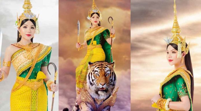 ​មាស សុខសោភា សម្រស់កាន់តែលេចធ្លោ ពេលគ្រងឈុតទេវធីតាជិះខ្លា