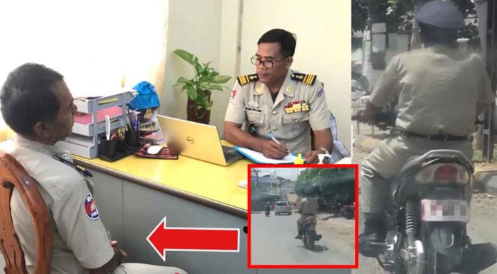 អនុវត្តតាមបទបញ្ជារបស់ឯកឧត្តមស្នងការ មន្រ្តីនគរបាលរូបនេះការិយាល័យបុគ្គលិកនៃស្នងការដ្ឋាននគរបាលខេត្តបាត់ដំបង កំពុងធ្វើការសាកសួរអំពីករណីល្មើសច្បាប់របស់ខ្លួនដូចរូបភាពដែលបានផ្សព្វផ្សាយ។ ក្នុងពេលសាកសួរមន្រ្តីនគរបាលរូបនេះលោកបានឆ្លើយទទួលស្គាល់កំហុសឆ្គងរបស់ខ្លួន ក្នុងករណីបើកបរមិនពាក់មួកសុវត្ថិភាព ដែលសកម្មភាពនេះគឺជាអំពើល្មើសច្បាប់ស្តីពីចរាចរណ៍ផ្លូវគោកនៃព្រះរាជាណាចក្រកម្ពូជា ។