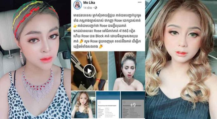 ពាក់ព័ន្ធករណីខាងលើនេះដែរ មានគណនីបណ្តាញសង្គមហ្វេសប៊ុកមួយ ឈ្មោះ “Mo Lika” ដែលមជ្ឈដ្ឋានជាច្រើនជឿថា ជារបស់តារាសម្តែងម៉ូលីកា បានសរសេរនៅថ្ងៃទី១២ ខែសីហា ឆ្នាំ២០២០ ថា “មានជនបរទេសម្នាក់សុំឱ្យខ្ញុំជួយគាត់ ហើយបានបញ្ជាក់បូករួមទាំងភស្តុតាងច្បាស់លាស់ថា កញ្ញា Rose បោកប្រាស់គាត់។ គាត់បានបញ្ជាក់ថា Rose បានខ្ចីលុយគាត់ មកដល់ពេលនេះ Rose នៅជំពាក់គាត់៤១៦៦ដុល្លារទៀត ហើយ Rose បាន Block គាត់ដោយមិនព្រមសងលុយគាត់ សូម Rose ជួយចេញមុខតទល់នឹងគាត់ដើម្បីរកយុត្តិធម៌ទាំងសងខាង”។