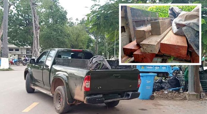 ខេត្តសៀមរាប ៖ កម្លាំងការិយាល័យនគរបាលចរាចរណ៍ផ្លូវគោកនៃស្នងការនគរបាលខេត្តសៀមរាប បានចុះរឹតបណ្តឹងច្បាប់ចរាចរណ៍ឆែកឆេរប័ណ្ណបើកបរ និងសុវត្ថិភាព តាមដងផ្លូវជាតិលេខ៦ ខណៈពេលនោះបានធ្វើការឃាត់រថយន្តពណ៌ត្រេអ៊ី១គ្រឿង គ្មានស្លាកលេខ ស្រាប់តែធ្លាយឃើញសុទ្ធតែឈើ១ឡានពេញ រួចនាំយកមករក្សាទុកនៅគោលដៅសួនច្បារពីរខាងលិចដងស្ទឹងសៀមរាប មុខព្រះអង្គចេកព្រះអង្គចម ដើម្បីទុកយកទៅប្រគល់ឱ្យមន្ត្រីជំនាញ ប៉ុន្តែដល់ម៉ោងប្រគល់ ស្រាប់តែឃើញឈើ១០ដុំប៉ុណ្ណោះ។