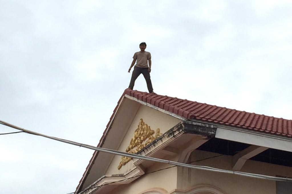 ភ្នំពេញ៖ បុរសម្នាក់ ក្នុងស្ថានវង្វេងបាត់ស្មារតី ត្រូវបានសាច់ញាតិអះអាងថាមានជម្ងឺប្រចសំកាយ ប្រព័ន្ធប្រសាទ បែជាហែកដំបូលផ្ទះជួល រត់ឡើងទៅលើដំបូលផ្ទះជាន់ទី២ បង្កឲ្យភ្ញាក់ផ្អើល នៅត្រង់ចំណុចផ្ទះជួល តាមផ្លូវវេងស្រេង ភូមិជ្រៃកោង សង្កាត់ចោមចៅ ខណ្ឌពោធិ៍សែនជ័យ កាលព៏វេលាម៉ោង៣រសៀលថ្ងៃទី១២ ខែតុលា ឆ្នាំ២០១៦ ។
