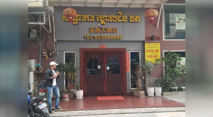 ភ្នំពេញ ៖ កាលពីរសៀលថ្ងៃទី២៧ ខែតុលា ឆ្នាំ២០២០ កម្លាំងកងរាជអាវុធហត្ថរាជធានីភ្នំពេញ សហការជាមួយនឹងអាជ្ញាធរមូលដ្ឋានសង្កាត់ទឹកថ្លា ខណ្ឌសែនសុខ បានចុះទៅពិនិត្យទីតាំងសណ្ឋាគារ ហ្គោលដិន ផត ដែលមានទីតាំងស្ថិតនៅតាមបណ្តោយផ្លូវណតប៊្រីដ ក្នុងសង្កាត់ទឹកថ្លា ខណ្ឌសែនសុខ។