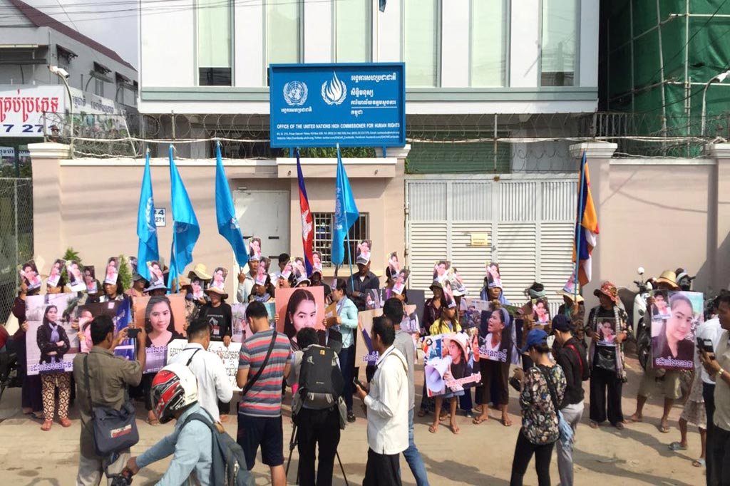 ភ្នំពេញ៖ ប្រជាពលរដ្ឋរងគ្រោះដីធ្លីនៅតំបន់បឹងកក់ប្រមាណ៣០នាក់បាននាំគ្នាលើកបដា ទៅតវ៉ានៅមុខអង្គការសហប្រជាជាតិ សិទ្ធិមនុស្ស សូមឲ្យជួយអន្តរាគមន៍ដោះលែងអ្នកស្រី ទេព វន្នី និងបញ្ចប់ជម្លោះនៅសហគមន៍បឹងកក់ កាលពីវេលាម៉ោង៨និង៣០នាទីព្រឹកថ្ងៃទី១៤ ខែតុលា នៅចំណុចដីឡូត៍លេខ៤ តាមផ្លូវ២៧១ ក្រុម១ ស្ថិតនៅភូមិ១ សង្កាត់ផ្សារដើមថ្កូវ ខណ្ឌចំការមន ។