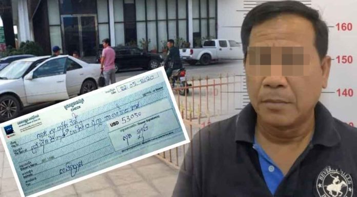 ភ្នំពេញ ៖ មន្ត្រីនគរបាលនាយកដ្ឋានព្រហ្មទណ្ឌក្រសួងមហាផ្ទៃ បានឱ្យដឹងថា នៅថ្ងៃទី០២ ខែវិច្ឆិកា ឆ្នាំ២០២០ សមត្ថកិច្ចនាយកដ្ឋានព្រហ្មទណ្ឌក្រសួងមហាផ្ទៃ បានឃាត់ខ្លួនបុរសម្នាក់ ពីបទចេញមូលប្បទានប័ត្រ (សែក) ជាង៥ម៉ឺនដុល្លារ ប៉ុន្តែអត់សាច់ប្រាក់សែកស្អុយ។
