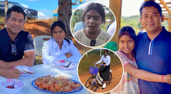 ដោយឃើញពីការលំបាករបស់ប្អូនស្រី ក៏ដូចជាបំពេញបំណងប្រាថ្នារបស់ប្អូនស្រី ខ្ញុំបាទសម្រេចចិត្តថានឹងផ្តល់ដី ហើយជួយសាងសង់ផ្ទះថ្មី១ខ្នង, កង់ចំនួន០២គ្រឿង សម្ភារៈប្រើប្រាស់ និងថវិកាមួយចំនួន ជូនប្អូនស្រី.. ថែមទាំងផ្តល់ការងារឲ្យឪពុករបស់ប្អូនស្រី មានការងារធ្វើ និងមើលថែដល់ក្រុមគ្រួសាររបស់ប្អូនស្រីដើម្បីមានអនាគតភ្លឺស្វាងទៅមុខទៀត..។ អ្វីដែលសប្បាយចិត្តខ្លាំងបំផុតនោះគឺបានកង់ថ្មីមួយនេះ”៕