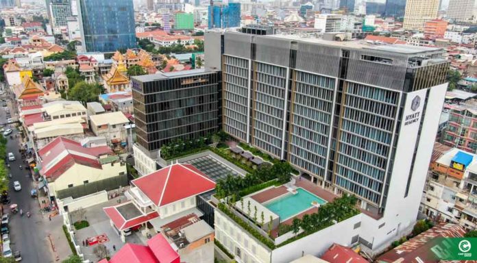 សណ្ឋាគារលំដាប់ផ្កាយប្រាំ ហៃយ៉ាត់ រីជិនស៊ី ភ្នំពេញ ដែលជាពាណិជ្ជកម្មផ្នែកសណ្ឋាគារ និងបដិសណ្ឋារកិច្ច របស់ក្រុមហ៊ុន ជីប ម៉ុង កំណត់យកការវិនិយោគ និងការអភិវឌ្ឍសហគមន៍ក្នុងតំបន់ ឲ្យដើរទន្ទឹមគ្នា។