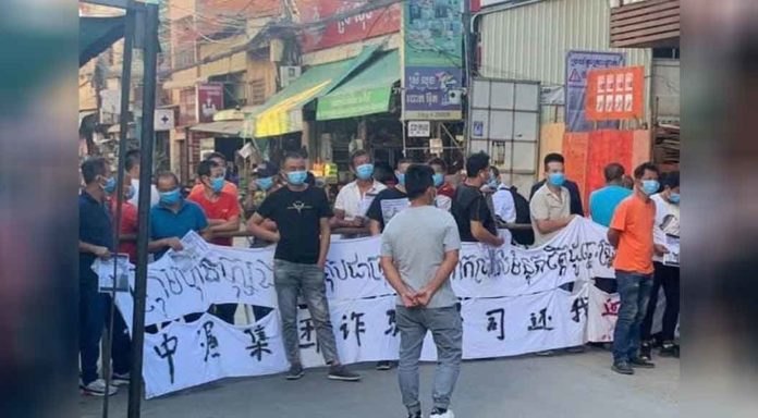 ភ្នំពេញ ៖ ក្រុមកម្មករជនជាតិចិន និងជនជាតិខ្មែរ ប្រមាណជាង ៣០នាក់ បានធ្វើការតវ៉ាបិទផ្លូវ និងលើកបដានៅខាងមុខក្រុមហ៊ុន ជិន យ៉ាស៊ីង ដែលមានទីតាំងស្ថិតនៅផ្លូវ៥០៨ សង្កាត់ផ្សារដើមថ្កូវ ខណ្ឌចំការមន កាលពីព្រឹកថ្ងៃទី០៣ ខែធ្នូ ឆ្នាំ២០២០ ក្នុងគោលបំណង ទាមទារឱ្យក្រុមហ៊ុនបើកប្រាក់ខែ ចំនួន៤ខែ ដែលក្រុមហ៊ុនមិនបានបើកឱ្យពួកគេ។