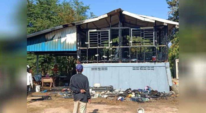 បន្ទាយមានជ័យ ៖ លំនៅដ្ឋានមួយខ្នងរបស់ស្ត្រីមេម៉ាយម្នាក់ ត្រូវបានអគ្គិភ័យឆាបឆេះអស់គ្មានសល់ ខណៈដែលស្ត្រីជាម្ចាស់ផ្ទះរវល់ដើររកចៅត្រឡប់មកវិញឃើញភ្លើងកំពុងឆេះផ្ទះ ស្រែកហៅគេឱ្យជួយមិនទាន់ ភ័យតក់ស្លុតពេក ដួលសន្លប់ស្តូក ទីបំផុតផ្ទះទាំងមូលត្រូវក្លាយជាចំណីភ្លើងទាំងស្រុង។