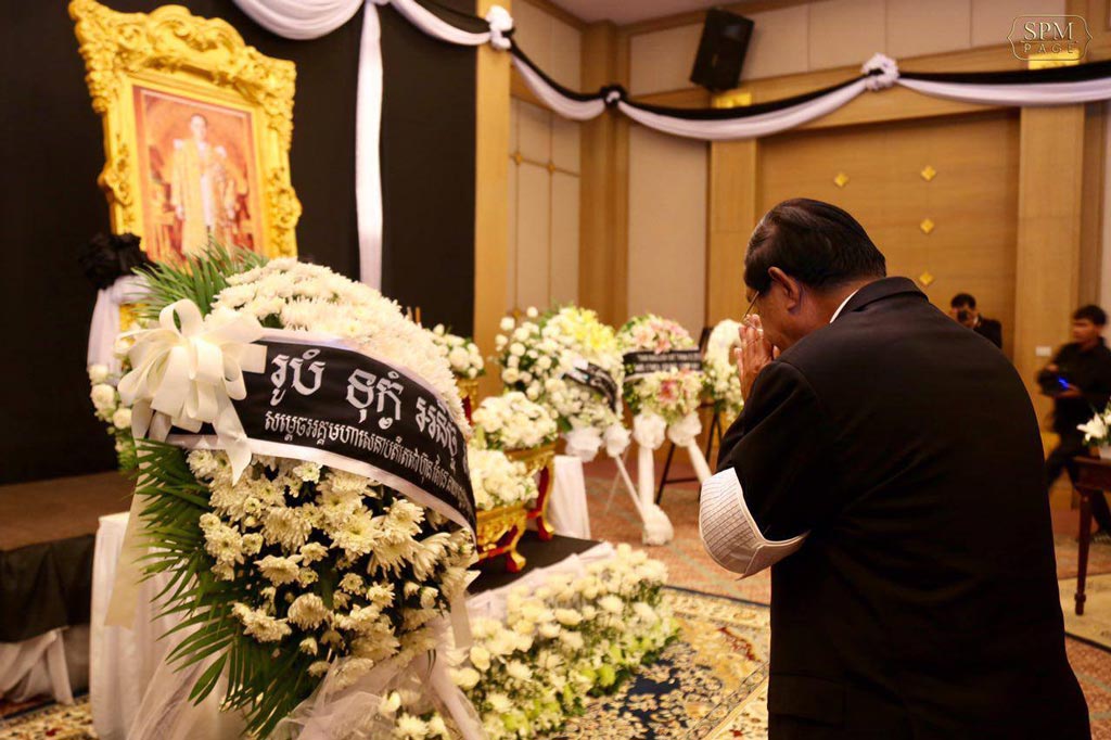 ទំព័រហ្វេសប៊ុកផ្លូវការរបស់សម្តេចនាយករដ្ឋមន្ត្រីហ៊ុន សែន បានសរសេរ កាលពីព្រឹក ថ្ងៃទី១៧ ខែតុលា ឆ្នាំ២០១៦ ថា “នៅព្រឹក ថ្ងៃទី១៧ ខែតុលា ឆ្នាំ២០១៦ សម្តេចតេជោ ហ៊ុន សែន នាយករដ្ឋមន្ត្រីនៃព្រះរាជាណាចក្រ កម្ពុជា បានអញ្ជើញគោរពព្រះវិញ្ញាណក្ខន្ធ ព្រះមហាក្សត្រថៃ Bhumibol Adulyadej  នៅ ស្ថានទូតថៃប្រចាំព្រះរាជាណាចក្រកម្ពុជា។ ព្រះមហាក្សត្រថៃ Bhumibol Adulyadej បាន សោយទិវង្គត កាលពីរសៀលថ្ងៃទី១៣ ខែតុលា ឆ្នាំ២០១៦ កន្លងទៅ ដោយព្រះជន្មាយុ៨៩ព្រះវស្សា។ រដ្ឋាភិបាលប្រទេសថៃ បានប្រកាស កាន់ទុក្ខរយៈពេល១ឆ្នាំ។