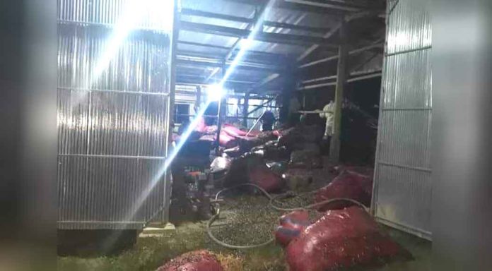 ចំណែករោងផ្ទុកអីវ៉ាន់១ខ្នងដែលទទួលរងការឆាបឆេះដែរនោះ មានទំហំ៦ម៉ែត្រ គុណនឹង ៩ម៉ែត្រ ធ្វើអំពីឈើ ប្រក់ស័ង្កសី ដំបូលស័ង្កសី និងជញ្ជាំងស្បូវ (ខូចខាតប្រមាណ២០ភាគរយ) ដែលម្ចាស់រោងមានឈ្មោះវង់ សុផាន់ណា ភេទប្រុស អាយុ៣៨ឆ្នាំ រស់នៅ ភូមិព្រៃទទឹង ឃុំជ្រៃ ស្រុកថ្មគោល សរុបជាទឹកប្រាក់ចំនួន១០០ដុល្លារ។