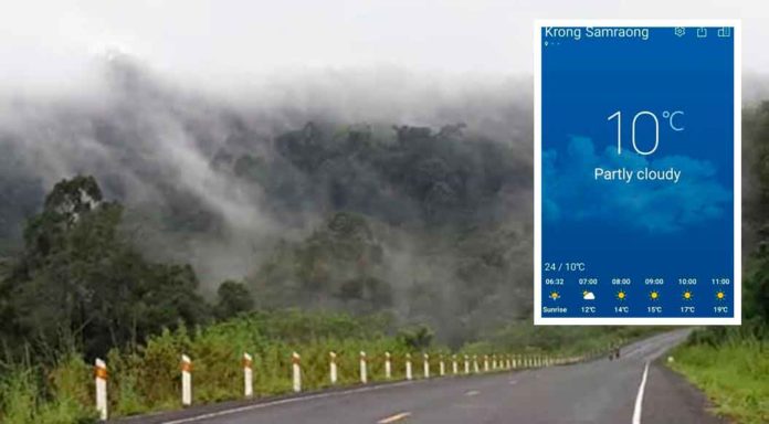 ភ្នំពេញ ៖ អាកាសធាតុនៅប្រទេសកម្ពុជា នឹងបន្តចុះត្រជាក់ខ្លាំង ដល់ ១១អង្សាសេ រហូតដល់ថ្ងៃទី១៤ ខែមករា ឆ្នាំ២០២១ នេះបើតាមសេចក្តីជូនដំណឹង ស្តីពីស្ថានភាពធាតុអាកាស (ចាប់ពីថ្ងៃទី១៣ -១៩ ខែមករា ឆ្នាំ២០២១) របស់ក្រសួងធនធានទឹកនិងឧតុនិយម ដែល «នគរធំ» ទទួលបាន នៅថ្ងៃទី១២ ខែមករា ឆ្នាំ២០២១។
