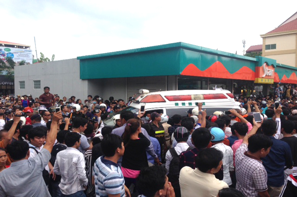 ភ្នំពេញ៖ នៅមុននេះបន្ដិច ប្រជាពលរដ្ឋជាច្រើនរយនាក់ បានសុំសមត្ថកិច្ចដង្ហែសពលោក កែម ឡី តែត្រូវអាជ្ញាធរមិនអនុញ្ញាត បង្កឲ្យប្រជាពលរដ្ឋមិនសុខចិត្ដ បាននាំគ្នាយកដុំថ្ម ដបទឹកសុទ្ធ គប់ទៅលើរថយន្ដដែលអាជ្ញាធរត្រៀមសម្រាប់ដឹកសពលោក កែម ឡី ទៅតម្កល់នៅវត្ដចាស់ ។
