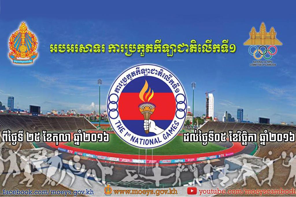 យោងតាមទំព័រហ្វេសប៊ុកផ្លូវការ របស់ ក្រសួងអប់រំ យុវជន និងកីឡា បានបញ្ជាក់ឱ្យ ដឹង កាលពីព្រឹកថ្ងៃទី២០ ខែតុលា ឆ្នាំ២០១៦ ថា “សូមចូលរួមទស្សនាដោយសេរី និងគាំទ្រ ព្រឹត្តិការណ៍ប្រកួតកីឡាជាតិលើកទី១ នឹងប្រព្រឹត្ត ទៅចាប់ពីថ្ងៃទី២៥ ខែតុលា ដល់ថ្ងៃទី០៥ ខែ វិច្ឆិកា ឆ្នាំ២០១៦ នៅរាជធានីភ្នំពេញ និងខេត្ត កំពង់ចាម ដោយមានកីឡា ១៥ប្រភេទ ត្រូវ ជា១៨៩វិញ្ញាសា និងកីឡាករ ២៦៣៧នាក់ មកពី២៥ រាជធានី–ខេត្ត និងក្រសួង២ គឺក្រសួង ការពារជាតិ និងក្រសួងមហាផ្ទៃ ចូលរួមប្រកួត ក្នុងព្រឹត្តិការណ៍នេះ។