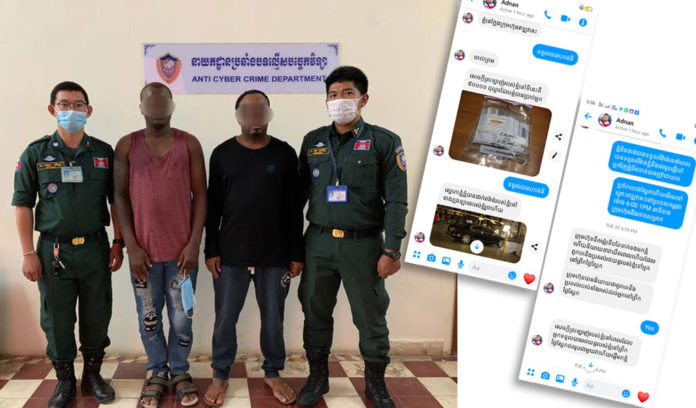 បុរសជនជាតិបរទេស២នាក់ ត្រូវបានសមត្ថកិច្ចចាប់ខ្លួន ពាក់ព័នញធនឹងការឆបោកតាមឡាញ តាមប្រើគណនីហ្វេសប៊ុកក្លែងក្លាយ ឆាតទៅជនរងគ្រោះ ដោយធ្វើការរាប់អាន សុំស្រលាញ់ ដោយសន្យាផ្តល់កាដូនិងលុយជាច្រើន ជាថ្នូរឲ្យជនរងគ្រោះផ្ញើលុយរាប់រយដុល្លារ ទៅឲ្យពួកគេ។