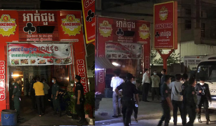 ភ្នំពេញ ៖ កម្លាំងចម្រុះនៃសាលារាជធានីភ្នំពេញ កាលពីវេលារំលងអធ្រាត្រ ឈានចូលថ្ងៃទី១១ ខែមីនា ឆ្នាំ២០២១ បានបើកប្រតិបត្តិការចុះបង្ក្រាបទីតាំងខារ៉ាអូខេមួយកន្លែង យីហោ អាត់ ជួង ស្ថិតនៅផ្លូវវេងស្រេង ភូមិដំណាក់ធំ សង្កាត់ស្ទឹងមានជ័យ៣ ខណ្ឌមានជ័យ ដែលផ្គើននឹងបម្រាមជួបជុំគ្នាក្នុងពេលដែលជំងឺកូវីដ-១៩ កំពុងតែឆ្លងរាលដាលក្នុងសហគមន៍។