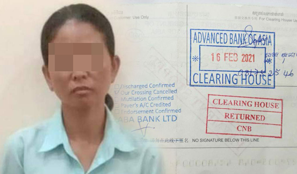 ភ្នំពេញ ៖ ការិយាល័យព្រហ្មទណ្ឌកំរិតស្រាល នៃស្នងការនគរបាលរាជធានីភ្នំពេញ បានធ្វើការឃាត់ខ្លួនស្ត្រីម្នាក់ពីបទចេញសែកស្អុយ (ជាង៦ម៉ឺនដុល្លារ) ឱ្យម្ចាស់បំណុល និងរំលោភលើសេចក្តីទុកចិត្ត។