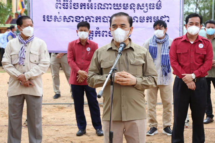 នៅព្រឹកថ្ងៃទី២៤ ខែមេសា ឆ្នាំ២០២១ ឯកឧត្តម វេង សាខុន ប្រធានក្រុមការងាររាជរដ្ឋាភិបាល និងជាប្រធានក្រុមការងារគណបក្សចុះមូលដ្ឋានស្រុកតំបែរ ខេត្តត្បូងឃ្មុំ ស្រុកកំពង់សៀម និងស្រុកជើងព្រៃ ខេត្តកំពង់ចាម និងឯកឧត្តម អ៊ុន ចាន់ដា អភិបាលនៃគណអភិបាលខេត្តកំពង់ចាម រួមទាំងឯកឧត្តម ខ្លូត ផន ប្រធានក្រុមប្រឹក្សាខេត្ត, ឯកឧត្តម ចាន់ សុវុឌ្ឍ ប្រធានក្រុមការងារឃុំស្រុក គណកម្មការកាកបាទក្រហមខេត្ត និងសហការីបានអញ្ជើញចុះមកពិនិត្យ និងវាយតម្លៃលើការខូចខាតផ្ទះសំបែងរបស់បងប្អូនប្រជាពលរដ្ឋនៅស្រុកកំពង់សៀម ឃុំស្រកចំនួន៦៩ខ្នង រួមទាំងដំបូលព្រះវិហារ សាលាសំណាក់ធម៌ ដំបូល និងផ្លាកសាលាឃុំ ដោយសារខ្យល់កន្រ្តាក់កាលពីថ្ងៃទី២២ ខែមេសា និងបាននាំយកអំណោយជាគ្រឿងឧបភោគ បរិភោគ និងថវិកាមួយចំនួនទៀតមកចែកជូនបងប្អូនជនរងគ្រោះផ្ទាល់។