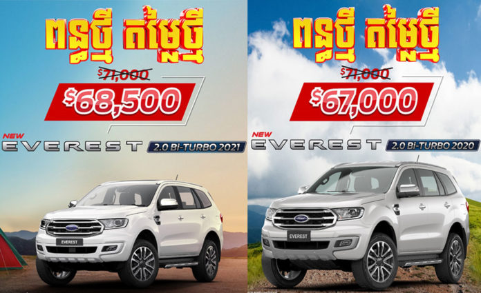 - Ford Everest 2.0L Bi-Turbo 2020 តម្លៃពីមុន $71,000 ចុះមកត្រឹម $67,000 តែប៉ុណ្ណោះ