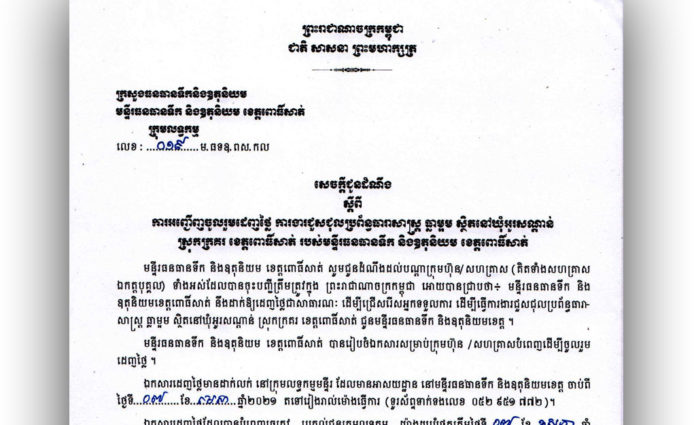 Homeព័ត៌មានជាតិសេចក្តីជូនដំណឹង ស្តីពី ការអញ្ជើញដេញថ្លៃការងារជួសជុលប្រព័ន្ធធារាសាស្ត្រ ធ្លាម្អម ស្ថិតនៅឃុំអូរសណ្តាន់​ ​ស្រុកក្រគរ ខេត្តពោធិ៍សាត់​របស់មន្ទីរធនធានទឹក​ ​និងឧតុនិយម​ខេត្តពោធិ៍សាត់