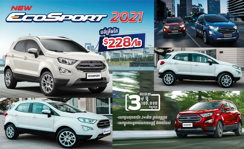 បច្ចុប្បន្នយើងសង្កេតឃើញថា ទីផ្សាររថយន្តថ្មីក្នុងព្រះរាជាណាចក្រកម្ពុជាកំពុងតែមានសន្ទុះកើនឡើងគួរឲ្យកត់សម្គាល់ ដោយសារតែតម្លៃរថយន្តថ្មីមានតម្លៃប្រហាក់ប្រហែលទៅរថយន្តមួយទឹក ឬរថយន្តជជុះដែលមានលក់នៅលើទីផ្សារដែលទាំងនេះក៏ព្រោះតែមានការកែសម្រួលអត្រាអាករពិសេសលើមុខទំនិញមួយចំនួនរបស់រដ្ឋាភិបាលក្នុងការបញ្ចុះពន្ធនាំចូលរថយន្តថ្មីប្រភេទ SUV ផងដែរ។ ម៉្យាងទៀតគេសង្កេតឃើញថាការទិញរថយន្តតាមរយៈការបង់រំលស់ក៏កាន់តែមានភាពទូលំទូលាយនៅប្រទេសកម្ពុជា ជាមួយនឹងលក្ខខណ្ឌនៃការបង់រំលស់ ទំហំនៃប្រាក់កម្ចី អត្រាការប្រាក់ដ៏សម្បូរបែប ទៅតាមធនាគារ និងគ្រឹះស្ថានមីក្រូហិរញ្ញវត្ថុដែលបានកំណត់ ដូច្នេះហើយទើបការបង់រំលស់កាន់តែមានភាពងាយស្រួលជាងមុនដែលអាចតម្រូវបានស្ទើរតែគ្រប់តម្រូវការរបស់លោកអ្នក ទោះបីស្ថិតក្នុងកម្រិតជីវភាពទាប មធ្យម ឬធូរធាក៏ដោយ។ ថ្ងៃនេះដែរយើងខ្ញុំសូមណែនាំរថយន្តថ្មីមួយប្រភេទដែលមានតម្លៃសមរម្យជាងគេក្នុងចំណោមរថយន្តថ្មីក្នុងទីផ្សារប្រទេសកម្ពុជា ដែលលោកអ្នកអាចបង់រំលស់ប្រចាំខែត្រឹមតែ $228 ដុល្លាតែប៉ុណ្ណោះនោះគឺរថយន្ត Ford EcoSport ស៊េរីថ្មីឆ្នាំ 2021។