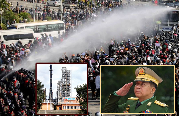 ជាការឆ្លើយតបទៅនឹងការអំពាវនាវម្តង ហើយ ម្តងទៀតរបស់សហគមន៍អន្តរជាតិឱ្យ ពូកគេកាត់ផ្តាច់ទំនាក់ទំនងជាមួយរបបយោធា មីយ៉ាន់ម៉ា ទីបំផុតក្រុមហ៊ុនផ្គង់ផ្គងប្រេងឥន្ធនៈ ដ៏ធំរបស់បារាំង Total និង Chevron របស់ សហរដ្ឋអាមេរិក បានប្រកាសផ្អាកការបង់ប្រាក់ មួយចំនួន ទៅឱ្យការបណ្តាក់ទុនរួមគ្នារបស់ ក្រុមហ៊ុន ដែលគ្រប់គ្រងដោយមេដឹកនាំរដ្ឋ ប្រហារ។