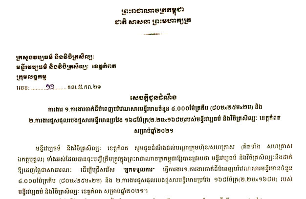 Homeព័ត៌មានជាតិសេចក្តីជូនដំណឹង ស្តីពីការងារចាក់ដីបំពេញបរិវេណសារមន្ទីរ និងជួសជុលរបងថ្មសារមន្ទីរ របស់មន្ទីរវប្បធម៌ និងវិចិត្រសិល្បះខេត្តកំពត ព័ត៌មានជាតិសន្ដិសុខសង្គម សេចក្តីជូនដំណឹង ស្តីពីការងារចាក់ដីបំពេញបរិវេណសារមន្ទីរ និងជួសជុលរបងថ្មសារមន្ទីរ របស់មន្ទីរវប្បធម៌ និងវិចិត្រសិល្បះខេត្តកំពត By Davin April 21, 2021 0 124 Share FacebookTwitterPinterestWhatsApp RELATED ARTICLES ព័ត៌មានជាតិ សេចក្តីជូនដំណឹង ស្តីអំពី ក្រសួងអប់រំ យុវជន និងកីឡា February 9, 2026 ព័ត៌មានជាតិ សេចក្តីជូនដំណឹង ស្តីអំពី ក្រសួងអប់រំ យុវជន និងកីឡា February 9, 2026 ព័ត៌មានជាតិ ប្រាក់ខែយោធិន អ្នកវិភាគថា គួរធ្វើទំនើបកម្ម បើកផ្តល់តាមប្រព័ន្ធធនាគារ February 7, 2026