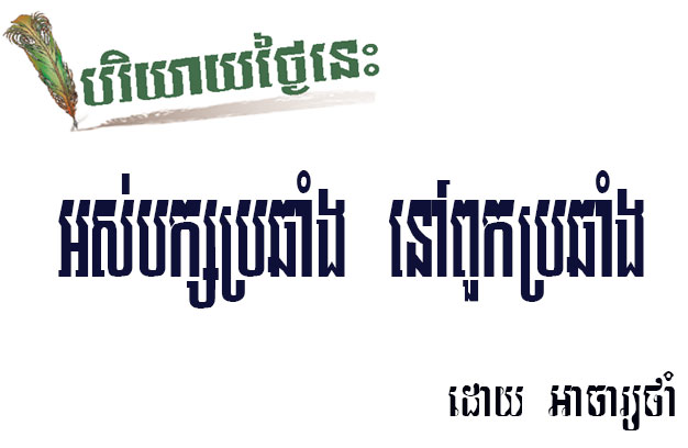 ព្រោះតែរឿងប្រឆាំងផ្កាប់មុខ ទើបបានជាគណបក្សសង្គ្រោះជាតិ (CNRP) ត្រូវរំលាយចោលជាស្ថាពរ “បិទផ្លូវតវ៉ា” ដោយសង្ឃឹមថា បញ្ហាពុករលួយ អយុត្តិធម៌សង្គម ច្បាស់ជាមន្ត្រី CPP និយាយជំនួស ឬជួយរិះគន់កែលម្អគ្នា ប៉ុន្តែមានឯណា! មន្ត្រី ជភភ អត់ដែលរិះគន់គ្នាឯងទេ ដោយការពាររហូត។ ដល់អ៊ីចឹងទៅ ស្រាប់តែ “អស់បក្សប្រឆាំង នៅពួកប្រឆាំង” កាន់ តែប្រឆាំងជាងមុនទៅទៀត ដែល “នគរធំ” ក្តាប់បាន ក៏រលីកពីរឿងប្រឆាំង មកធ្វើប្រធានបទបរិយាយថ្ងៃនេះ…។