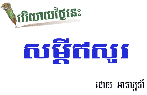 សរុបទៅ “សម្តីឥសូរ” សំដៅដល់បទបញ្ជា ដាក់ចេញទៅ បើដល់កំណត់ថ្ងៃឱសានវាទ ធ្វើអត់អនុវត្ត មិនហៅ “សម្តីឥសូរ” តែជា “សម្តីក្មេង” ដែលកន្លងទៅនេះ ប្រជាពលរដ្ឋនៅរាជធានីភ្នំពេញ ពិសេស នៅសង្កាត់ចោមចៅ១ ខណ្ឌពោធិ៍សែនជ័យ ធ្លាប់កត់សម្គាល់ពី “សម្តីឥសូរ” ក្លាយទៅជា “សម្តីក្មេង” នេះ ករណីដែលអភិបាលខណ្ឌពោធិ៍សែនជ័យ បានចេញសេចក្តីជូន ដំណឹងឱ្យប្រជាពលរដ្ឋ នៅក្នុងបុរីពិភពថ្មី ត្រពាំងថ្លឹង រុះរើសំណង់អនាធិបតេយ្យ ដែលសង់បន្ថែមលើអណ្តូងលូ និងចិញ្ចើម ផ្លូវទាំងអស់ ចេញ ដីម្បីដោះស្រាយប្រព័ន្ធបង្ហូរទឹក កុំឱ្យមានការជន់លិចផ្ទះប្រជាពលរដ្ឋទៀត ដោយកំណត់ថ្ងៃឱសានវាទ ច្បាស់លាស់ថា បើមិនរុះរើដោយខ្លួនឯងទេ អាជ្ញាធរនឹងចុះរុះរើ។ ប៉ុន្តែក្រោយពីចេញសេចក្តីជូនដំណឹងនោះ លោកអភិបាល ខណ្ឌ ទម្លាយថា មានការគំរាមពីអ្នកសង់សំណង់ខុសច្បាប់មួយចំនួន ស្រាប់តែអាជ្ញាធរដកថយ មិនហ៊ានអនុវត្តសេចក្តីជូន ដំណឹងឱ្យរុះរើនោះ រហូតមកដល់ឥឡូវ ជិត ១ឆ្នាំទៅហើយ ដែលធ្វើឱ្យប្រជាពលរដ្ឋមួយចំនួនដែលគោរពច្បាប់ និងបានរុះរើ សំណង់បន្ថែមរបស់ខ្លួន តាមសេចក្តីជូនដំណឹងនោះ មានការខកចិត្ត ស្តាយក្រោយ អស់ទំនុកចិត្តលើអាជ្ញាធរ។ រីឯអ្នកដែល មិនគោរពច្បាប់ រួមទាំងអ្នកគំរាមអភិបាលខណ្ឌផង មិនបានរុះរើសំណង់ខុសច្បាប់របស់ខ្លួនចេញឡើយ ដោយខ្លះបានលុប អក្សរក្រហម ដែលអាជ្ញាធរសរសេរថា “រុះរើ” ចេញ ហើយសើចចំអកឱ្យអាជ្ញាធរខណ្ឌថា “អញមិនរុះ ធើអីអញ!”។ ករណី នោះគឺមកពីអាជ្ញាធរ ដែលជាអ្នកអនុវត្តច្បាប់ ខ្សោយជាងអ្នកអង្គុយលើច្បាប់ ដោយបានចេញសេចក្តីជូនដំណឹងឱ្យរុះរើ ឬ ហៅថា “សម្តីឥសូរ” តែដល់ត្រូវគេគំរាមបន្តិច មិនហ៊ានអនុវត្ត ក៏ក្លាយជា “សម្តីក្មេង” នេះឯង… គ្មានបានការ!…។ ស្រុក ណាប្រទេសណា ដែលមាន “អនាធិបតេយ្យ“ នឹងអូសទាញការរីកចម្រើនឱ្យដើរថយក្រោយ ហេតុនេះ ចាំបាច់ត្រូវតែបោស សម្អាតអនាធិបតេយ្យឱ្យអស់ ដោយយក “សម្តីឥសូរ” មកអនុវត្តជាកំហិត ស្របតាម “យុទ្ធសាស្ត្រ ៨យ៉ាង” របស់ព្រះបាទ-ជយវរ្ម័នទី៧…”៕