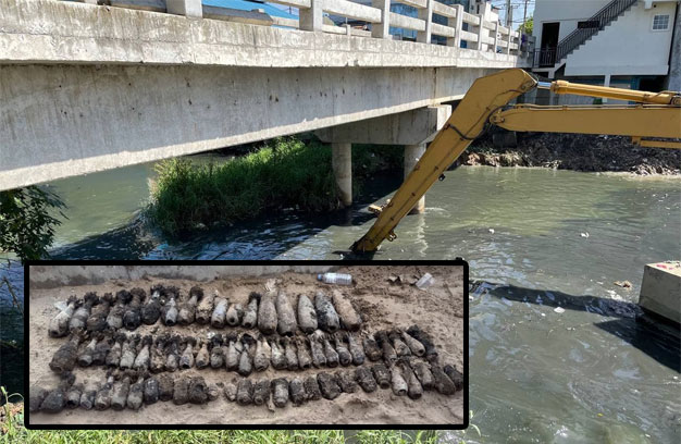 ភ្នំពេញ ៖ គ្រាប់មិនទាន់ផ្ទុះ ដែលបន្សល់ ទុក កាលពីសម័យសង្គ្រាម ចំនួនជិត១០០ គ្រាប់ ត្រូវបានអាជ្ញាធររាជធានីភ្នំពេញ ប្រទះ ឃើញ ខណៈដែលក្រុមការងារ នៃមន្ទីរធន-ធានទឹក និងឧតុនិយម រាជធានីភ្នំពេញ ធ្វើ សកម្មភាពជីកស្តារប្រឡាយម័ល នៅក្នុងភូមិ- សាស្ត្រ ភូមិម័ល សង្កាត់ដង្កោ ខណ្ឌដង្កោ ដែល មានប្រវែងជិត៣គីឡូម៉ែត្រ ដើម្បីរំដោះការ លិចលង់ ភូមិដ្ឋានប្រជាពលរដ្ឋ ដោយជំនន់ទឹក ភ្លៀង នារដូវវស្សានេះ ហើយបានប្រទះឃើញ គ្រាប់ទាំងនេះ នៅបាតប្រឡាយ។