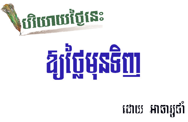 ពាក្យបណ្តៅ “ព្រឹក្សាដុះនៅខាងផ្លូវ អ្នកផងដើរទៅ ឱ្យថ្លៃមុនទិញ” ជាចម្លើយគឺ “ដើមម្កាក់=១កាក់”។ ដើមម្កាក់ ទោះ ជាវាចេញផ្លែស្ទើរបាក់ដើមអាចលក់បានលុយរាប់ម៉ឺនរៀល ក៏វាមិនហួសពី ១កាក់ ព្រោះមនុស្សបានឱ្យតម្លៃវាតាំងពីមិនទាន់ ទិញ។ សម្រាប់អ្នកនយោបាយ បែកឆ្វេងចេញពីចង្កោមពួកប្រឆាំង ទៅបង្កើតបក្សថ្មីនោះ ច្បាស់ជារាស្ត្រម្ចាស់ឆ្នោត ឱ្យថ្លៃ មុនទិញ ឬវាយតម្លៃពីគុណសម្បត្តិ និងគុណវិបត្តិ មុនពេលបោះឆ្នោត។ ចំណែកគណបក្សប្រជាជនកម្ពុជា (CPP) ឬបក្ស កាន់អំណាច ដែលយល់ព្រមប្រគល់តំណែងក្នុងជួររដ្ឋាភិបាល ឱ្យអ្នកចុះចូល ក៏ឱ្យថ្លៃមុនទិញដែរ ដែល “នគរធំ” ក្តាប់បាន ក៏លើកពាក្យបណ្តៅខាងលើ មកធ្វើប្រធានបទបរិយាយថ្ងៃនេះ….។