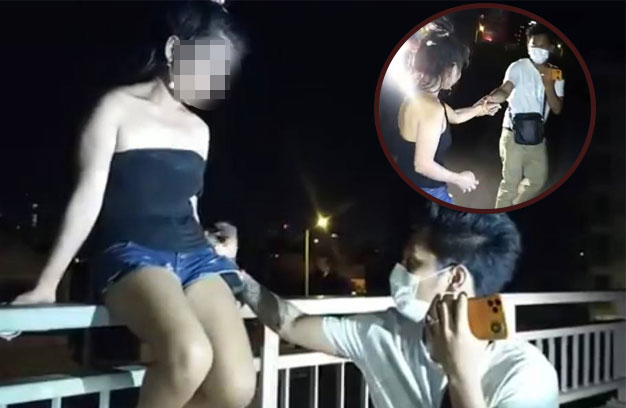 ភ្នំពេញ ៖ នារីរូបស្រស់សាច់សខ្ចីម្នាក់ នៅសុខៗ ក៏បានឡើងទៅអង្គុយលេងលើបង្កាន់ ដៃស្ពានអាកាសស្ទឹងមានជ័យទាំងកណ្តាលអធ្រាត្រ និងត្រូវបានអ្នកដំណើរប្រទះឃើញ ស្មានតែ នាងចង់លោតសម្លាប់ខ្លួន ក៏រាយការណ៍ប្រាប់ សមត្ថកិច្ច និងផ្អើលដល់អ្នកសារព័ត៌មាន ចុះ ទៅជួយលួងលោម ឱ្យនាងចុះមកវិញ បែរជា នាងប្រាប់ថា មានអារម្មណ៍ស្អុះស្អាប់ពេក ក៏ទៅ អង្គុយលេង ដើម្បីស្រូបយកខ្យល់ត្រជាក់ៗប៉ុណ្ណោះ ហើយត្រូវបានអ្នកសារព័ត៌មាន ទាញដៃចុះមក ក្រោមវិញ ដើម្បីការពារកុំឱ្យមានគ្រោះថ្នាក់ ជាយថាហេតុ។