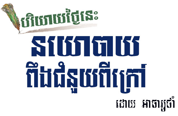 ដូច្នេះយើងឃើញថា “ជំនឿលើជំនួយពីក្រៅ នាំទៅដល់សេចក្តីទុក្ខព្រួយ” ពោលគឺខ្មែរយើងពឹងគេ ត្រូវជំពាក់គុណគេ ខ្ចីលុយគេ ត្រូវសងគេ ដូចច្បាប់ក្រមង៉ុយ ថា “ខ្មែរចេះតែកិន ចិនចេះតែកត់” ប៉ុន្តែដល់ខ្មែរយើងជួយគេៗ អត់កត់ទេ ដោយ បំភ្លេចគុណខ្មែរ សូន្យឈឹង។ ខ្មែរ ធ្លាប់ជួយច្បាំងយួន សៀម បារាំង តែអន្តរាគមន៍របស់ខ្មែរ គេមិនដែលរំព្ញក ផ្ទុយពីខ្មែរ ឯណេះ ជំពាក់គុណយួន ក៏ចារទុកក្នុងបេះដូង ឬ “មិត្តភាពម៉ឺនឆ្នាំ” និងចារឹកគុណរបស់ចិន ទៅជា “មហាមិត្តដែកថែប”។ ខ្មែរ ពឹងគេក៏បានទុក្ម្ខ គេពឹងខ្មែរ ក៏បានទុក្ខដែរ ដូចករណីខ្មែរ បើកឱ្យជនជាតិចិន រាប់ពាន់នាក់ មកនៅក្រុងព្រះសីហនុ និង បើកឱ្យជនជាតិយួន មកនៅលើផ្ទះបណ្តែតទឹក លើទន្លេសាប បានត្រឹមរងទុក្ខ ព្រោះដេញមិនចេញ ខូចបរិស្ថានទន្លេ។ ពួក ប្រឆាំង ដែលពឹងអាមេរិក អឺរ៉ុប ថា អាចជួយពួកគេឱ្យមានការផ្លាស់ប្តូរនោះ ក៏កាន់តែឆ្ងាយទៅៗ ដូចសង្ឃឹមផ្កាយលើ មេឃ។