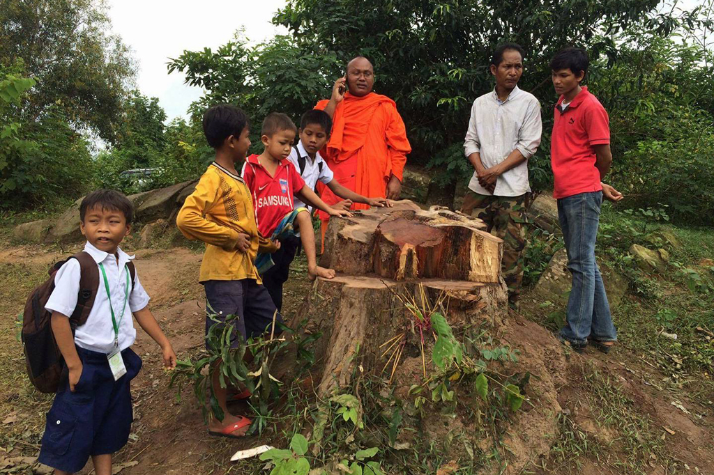 គួររំលឹកថា កាលពីយប់ថ្ងៃទី០៦ វិច្ឆិកា ឆ្នាំ២០១៦ មានមន្ត្រីកងរាជអាវុធហត្ថ និង ទាហានប៉ារ៉ាជាច្រើននាក់ បានឈរការពារឱ្យ មន្ត្រីរដ្ឋបាលព្រៃឈើដឹកដើមគ្រញូង ដែលមាន មុខកាត់ជាង១០០ និងមានអាយុជិត២០០ឆ្នាំ ដែលជាដើមឈើជំនឿរបស់អ្នកភូមិ ស្ថិតនៅ ភូមិនគរក្រៅ សង្កាត់គោកចក ក្រុងសៀមរាប ខេត្តសៀមរាប ដែលមានចម្ងាយប្រមាណ២ គីឡូម៉ែត្រ ពីប្រាសាទអង្គរវត្ត។ ដើមគ្រញូងដ៏ ធំនេះ ត្រូវបានលួចកាប់រំលំ ដួលដល់ដី កាល ពីថ្ងៃទី០៥ វិច្ឆិកា។