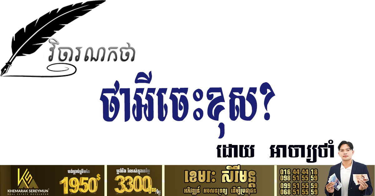 អ៊ីចឹងដើម្បីឱ្យខ្មែរមួយនគរ និយាយពីគោ ស្របគ្នា លុះត្រាតែអ្នកនយោបាយ ខ្មែរ ចាប់ដៃគ្នាស្វែងរករូបមន្តផ្សះផ្សាជាតិទើបបាន។ បើអ្នកនយោបាយយើង នៅតែប្រកាន់អស្មិមានះ “មានឯងអត់អញ មានអញអត់ឯង” ដូចពេលនេះ ពិត ណាស់ថា ទោះជាកូវីដ ឬដែលតា ធូរស្រាលយ៉ាងណា ក៏អ្នកប្រឆាំង ចាំតែនិយាយ ផ្ទុយ។