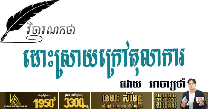 ដោះស្រាយក្រៅប្រព័ន្ធ ក៏ដូចជាទុកឱកាសឱ្យ “តុលាការកែខ្លួន” ផងដែរ ព្រោះតែជាប់អគតិ៤ ទើបសម្តេចនាយករដ្ឋមន្ត្រី បញ្ជាឱ្យមន្ត្រីនីតិប្រតិបត្តិ ដោះ– ស្រាយទំនាស់ ក្រៅអំណាចតុលាការ៕