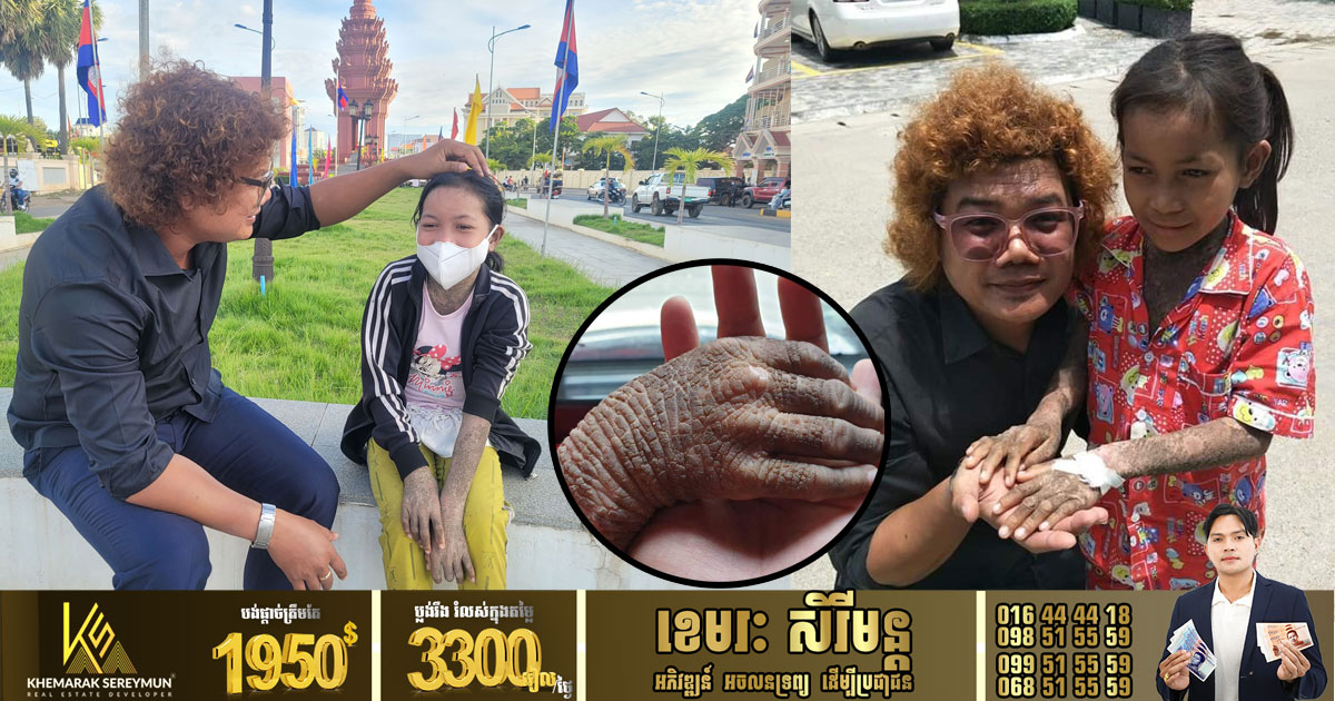 ភ្នំពេញ ៖ ក្មេងស្រីម្នាក់ មានវាសនាអភ័ព្វខ្លាំងណាស់ កើតមកក្នុងត្រកូលគ្រួសារទីទ័លក្រហើយ ថែមទាំងមានជំងឺចម្លែកតាំងពីកំណើតទៀតផង ដោយស្បែករបស់ក្មេងស្រីរូបនេះ មានស្ថានភាពប្រេះក្រហែង ចេញឈាមស្ទើរគ្រប់កន្លែង ជាហេតុធ្វើឱ្យនាងមានការឈឺចុកចាប់ ក្រហាយ រមាស់ ហូបចុក ដេកពួនមិនដែលបានស្រួលនឹងគេសោះឡើយ ហើយទោះបីជាត្រូវបានសប្បុរសជនជាប្រធានមណ្ឌលកុមារកំព្រា មួយរូប  ព្យាយាមជួយនាំនាងទៅព្យាបាលតាមមន្ទីរពេទ្យមួយចំនួន អស់រយៈពេល ២ឆ្នាំមកហើយ តែហាក់មិនមានប្រសិទ្ធភាពសោះ។