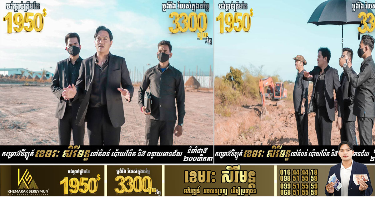 គូរបញ្ជាក់ថាកំពូលតារាចម្រៀងខេមរៈ សិរីមន្ដ ចាប់ដៃគ្នាជាមួយ ក្រុមហ៊ុន ប៉ាងណាគ្រី បានចេញបោះទុន រាប់លានដុល្លារ ពុះដីឡូតិ៏ចំនួន 200ហិកតា ខេត្តបន្ទាយមានជ័យ នៅជាប់និងក្រុង ប៉ោយប៉ែតតែម្តង ធ្វើអោយប្រជាពរដ្ឋ សប្បាយរីករាយនិងសាទរជាខ្លាំង ដោយសារ ដីឡូតិ៏របស់លោក មានតម្លៃទាបខ្លាំងជាងទីផ្សារ គឺ ត្រឹមតែ១៩៥០ដុល្លារឡើងទៅតែប៉ុណ្ណោះ និងបង់រំលស់ត្រឹមតែ ១០ម៉ឺនរៀលក្នុងមួយខែដោយឥតការប្រាក់ ឬស្មើនិង ៣៣០០រៀលក្នុងមួយថ្ងៃ តម្លៃនេះជាតម្លៃដែលទាបជាងគេបំផុតនៅទីផ្សារ និង អាចជួយសម្រួលអោយប្រជាពលរដ្ឋមានលទ្ធភាព ក្លាយជាម្ចាស់ អចលនទ្រព្យប្លឹងរឹងស្របច្បាប់ភ្លាមៗ។ មិនតែប៉ុណ្ណោះគម្រោងដីឡូត៍របស់លោក ខេមរៈ សិរីមន្ត កំពុងតែមានការអភិវឌ្ឍន៍និងជាតំបន់ដ៏មានសក្តានុពលខ្លាំងមានដូចជារោងចក្រឧស្សាហកម្មជាច្រើនកំពុងដំណើរការ,អគារ CASINO ធំៗកំពុងសាងសង់,ផ្សារដោះដូរទំនិញខ្មែរថៃធំជាងគេនៅក្នុងតំបន់,គម្រោងវីឡារជាច្រើនរយខ្នង,ទីលានវាយកូនហ្គោលដ៏ប្រណិត,ជាប់គម្រោងធំៗពីរ គម្រាងអភិវឌ្ឍន៍ បឹងជង្រុកតេជោឈ្នះៗនិង គម្រោងអ្នកឧកញ៉ាឡេង ណាវ៉ាត្រា,ទំហំឡូត៍ 5m X 20m,មានផ្លូវភ្លោះបេតុង ៣០ម៉ែត្រអមដោយផ្កាក្ងោក និងភ្លើងបំភ្លឺផ្លូវ ឆ្ពោះទៅខេត្តបាត់ដំបង,មានផ្លូវភ្លោះបេតុង ២០ម៉ែត្រ អមដោយដើមដូងប្រេង និងភ្លើងបំភ្លឺផ្លូវ ឆ្ពោះទៅបឹងជង្រុកតេជោឈ្នះៗ,ចម្ងាយ ១៧ គីឡូម៉ែត្រ តាមច្រកកូនដំរី,ប្រព័ន្ធភ្លើង, ប្រព័ន្ធទឹក, ប្រព័ន្ធលូ, ប្លង់រឹង ស្របច្បាប់ ១០០%។