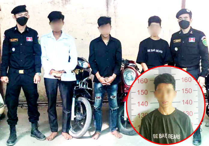 ជនសង្ស័យទាំង ៣នាក់ ដែលត្រូវបានសមត្ថកិច្ចចាប់ឃាត់ខ្លួន រួមមាន ៖ ទី១-ឈ្មោះអ៊ុន សារីវ៉ាន់នុត ហៅទី ភេទប្រុស អាយុ១៦ឆ្នាំ មុខរបរសិស្ស មានលំនៅ ផ្ទះគ្មានលេខ ផ្លូវ៧៧បេតេ ភូមិឫស្សី សង្កាត់ស្ទឹងមានជ័យទី២ ខណ្ឌមានជ័យ (គ្មានផ្ទុកសារធាតុញៀន)។ ទី២-ឈ្មោះ ឆោម ដារ៉ា ភេទប្រុស អាយុ១៦ឆ្នាំ មុខរបរសិស្ស មានលំនៅ ផ្ទះជួលផ្លូវ៣១បេតេ ភូមិសន្សំកុសល១ សង្កាត់បឹងទំពន់ទី១ ខណ្ឌមានជ័យ (គ្មានផ្ទុកសារធាតុញៀន) និងទី៣-ឈ្មោះកែវ ចន្ថារ៉ាវុទ្ធ ភេទប្រុស អាយុ១៦ឆ្នាំ មុខរបរសិស្ស មានលំនៅ ផ្ទះគ្មានលេខ ផ្លូវលំ ភូមិត្នោតជ្រំ សង្កាត់បឹងទំពន់ទី២ ខណ្ឌមានជ័យ (គ្មានផ្ទុកសារធាតុញៀន)។ រីឯវត្ថុតាងចាប់យក រួមមាន កាំប៉័ងតោ ចំនួន១ដើម ម៉ូតូ ចំនួន២គ្រឿង ម៉ាកហុងដា ឌ្រីម សេ១២៥ ពណ៌ខ្មៅ លេខតួ-លេខម៉ាស៊ីន 8894067 ពាក់ស្លាកលេខ ភ្នំពេញ 1BY-9214 និងម៉ាកហុងដា ស្គូបពី ពណ៌ក្រហម លេខតួ -លេខម៉ាស៊ីន 5067784 ពាក់ស្លាកលេខ ភ្នំពេញ 1BU-0892។