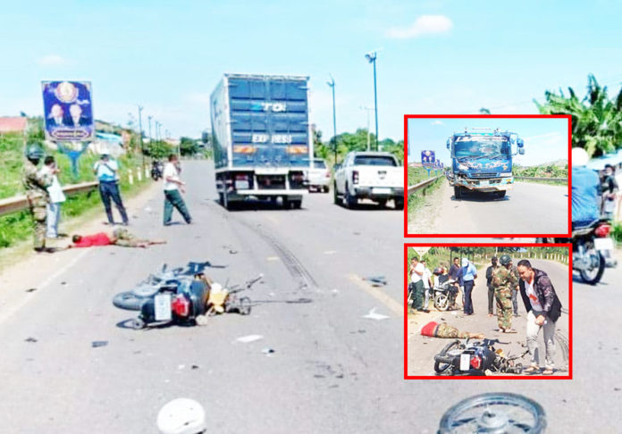 អ្នកជិះម៉ូតូស្លាប់) និងខូចខាតម៉ូតូទាំងស្រុងនិងរថយន្ដរងកម្រិតស្រាល។ បើតាមការ បញ្ជាក់ពីមន្ត្រីនគរបាលចរាចរណ៍ជំនាញខេត្តបានបន្តថា អ្នកជិះម៉ូតូមានឈ្មោះ ហៀត ហាន ភេទ ប្រុស អាយុ២៨ឆ្នាំ មុខរបរ ទាហាន