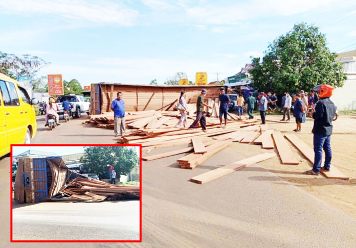 ឡានធំក្រឡាប់ ក្អួតចេញសុទ្ធតែឈើ